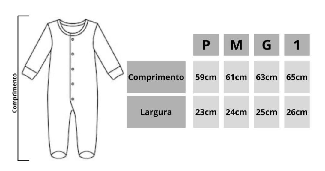 Um macacão completo, versátil e feito para acompanhar o bebê o ano inteiro. Com modelagem ampla e muito confortável, é perfeito para os pequenos recém-nascidos e, para os maiores, funciona também como pijaminha macia e prática para o dia a dia.